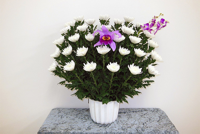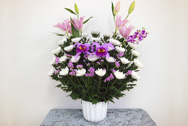 お花の種類や量などで15000円のものと20000円のものがございます。